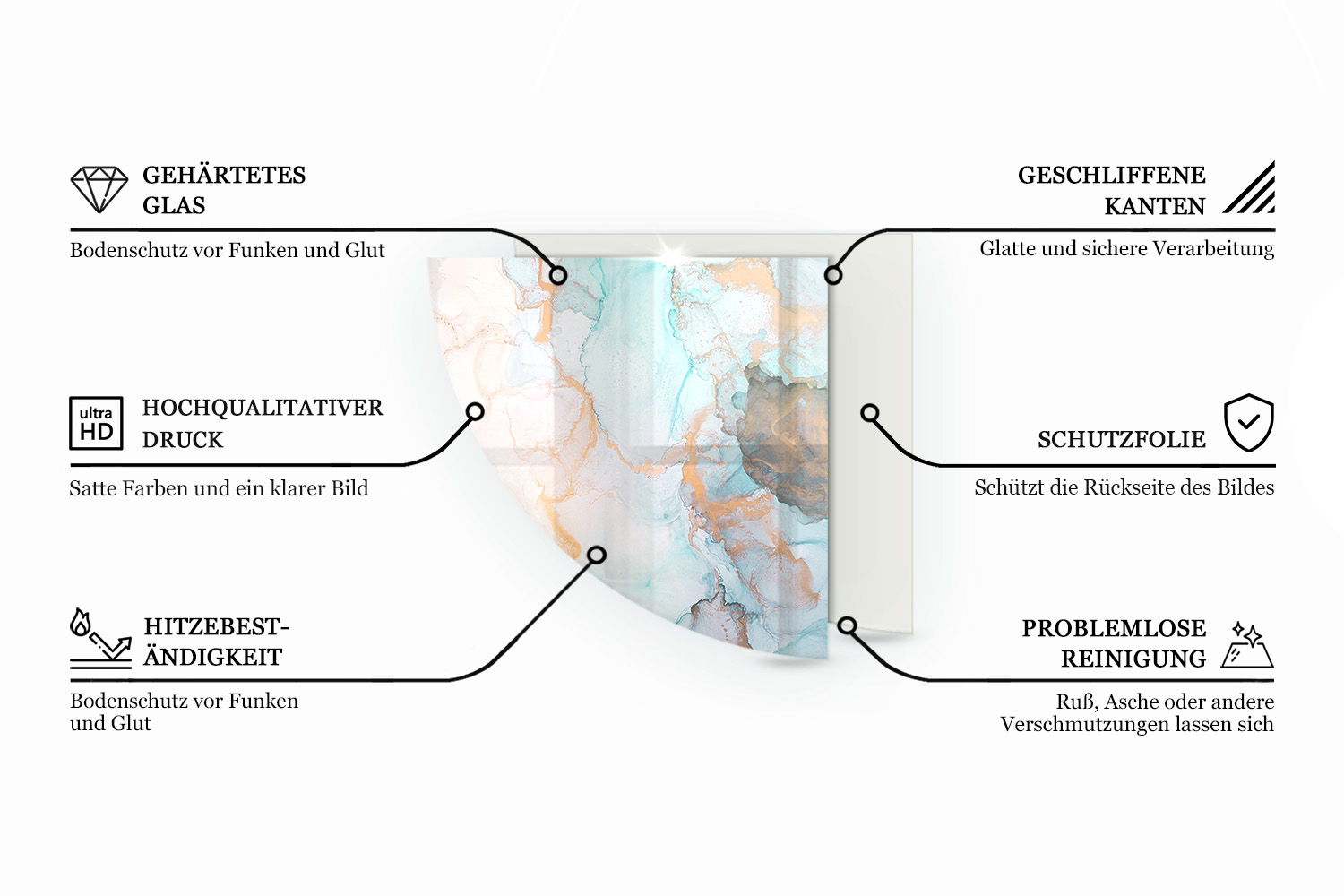 Die Verwendung von gehärtetem Glas gewährleistet eine hohe Beständigkeit gegenüber hohen Temperaturen sowie mechanischen Beschädigungen und sorgt für eine lange Lebensdauer des Produkts. Die Glasplatte wurde in Polen mit großer Sorgfalt und Liebe zum Detail entworfen und gefertigt, ist durch eine Herstellergarantie abgedeckt und zeichnet sich durch eine kurze Lieferzeit aus.