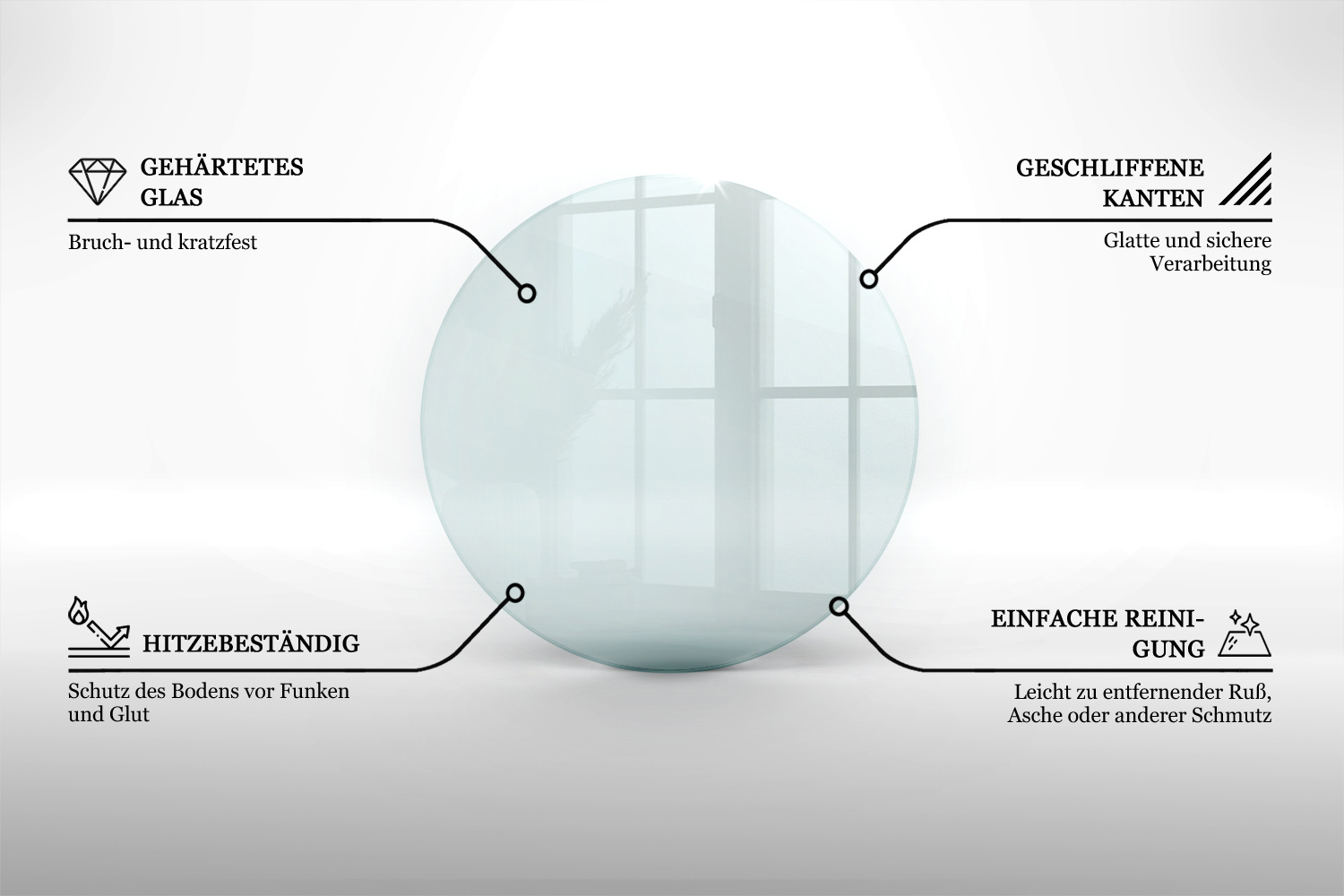 Die Glasplatte für Kamin rund transparent überzeugt durch elegantes Design und eine moderne, minimalistische Ausstrahlung.