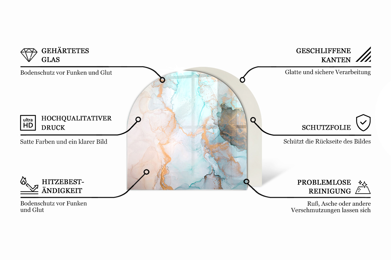 Halbrunde Glasplatte für Kaminofen Rohstrukturmuster