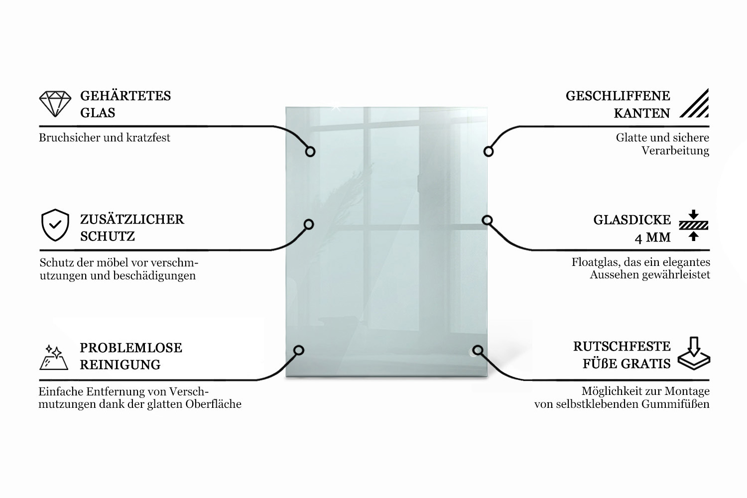 Die Rechteckige tischplatte transparent ist die perfekte Wahl, wenn Sie Ihrem Raum eine moderne Formensprache und gleichzeitig eine universelle, zeitlose Eleganz verleihen möchten. Ein kleines Detail mit großer Wirkung – subtil, aber dennoch stark im Ausdruck.